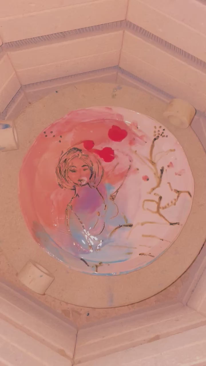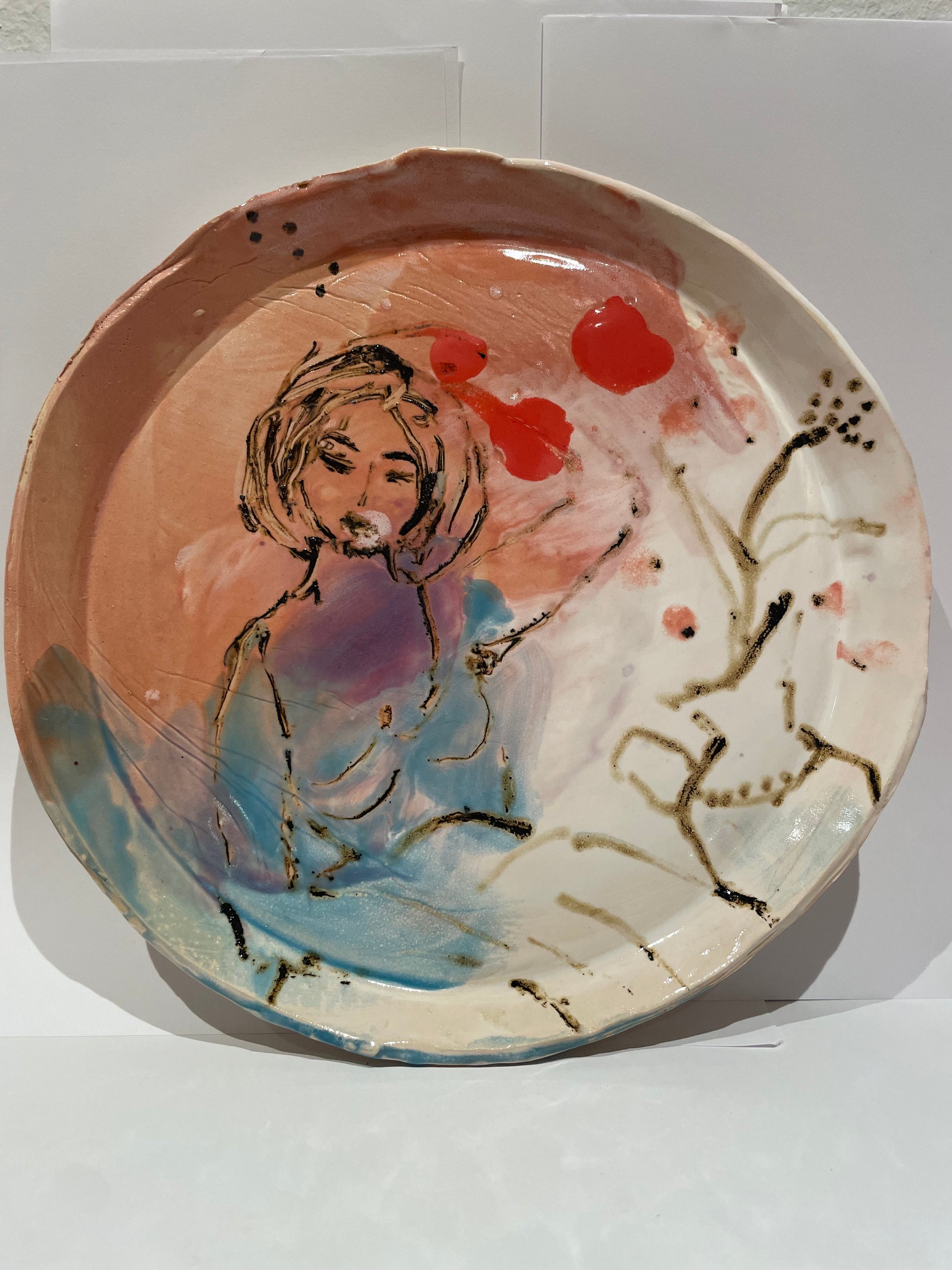 Hand built stoneware dish 26 cm, can be hung on the wall as well 2025